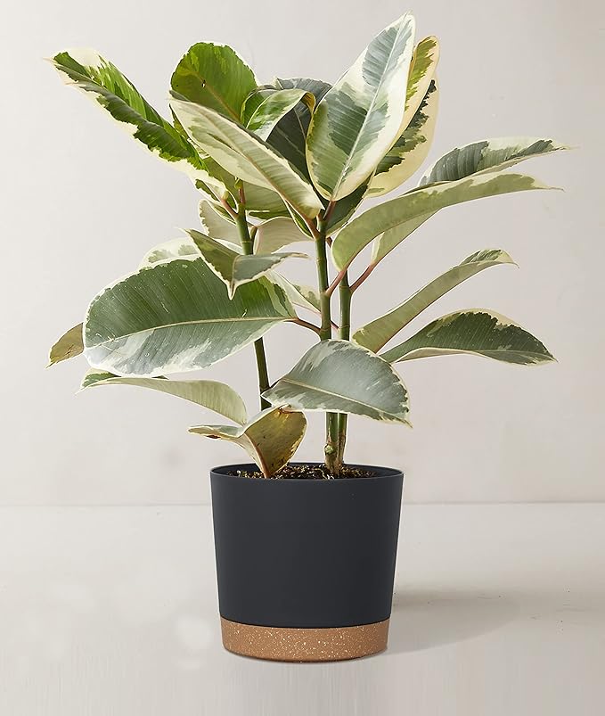 kubvici Plant Pots for Indoor Plants, 2 Pack 8 Inch Plastic Flower Pot Planters with Drainage Saucer for Indoor Outdoor Garden Home (8” Black)