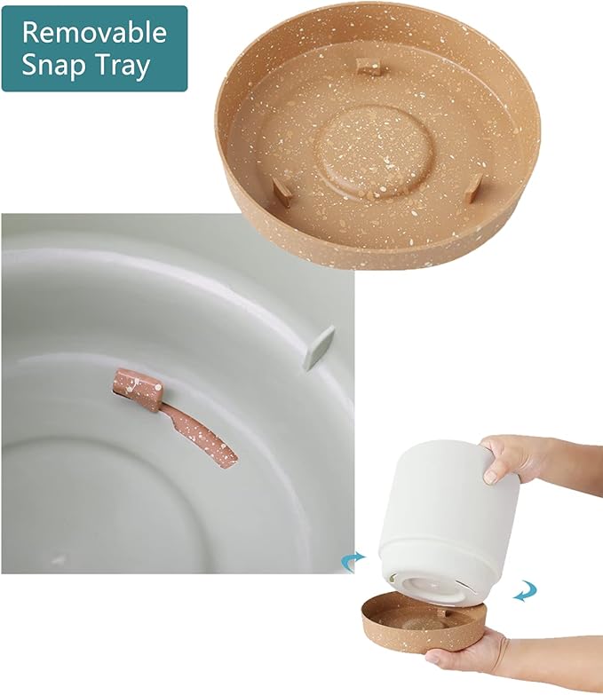 - 【MINIMALIST DESIGN】A simple modern aesthetic and clean matte finish planter pot will match any home or office decor. The light brown rounded trays contrast beautifully with the white or green plant pots for a high-end look
