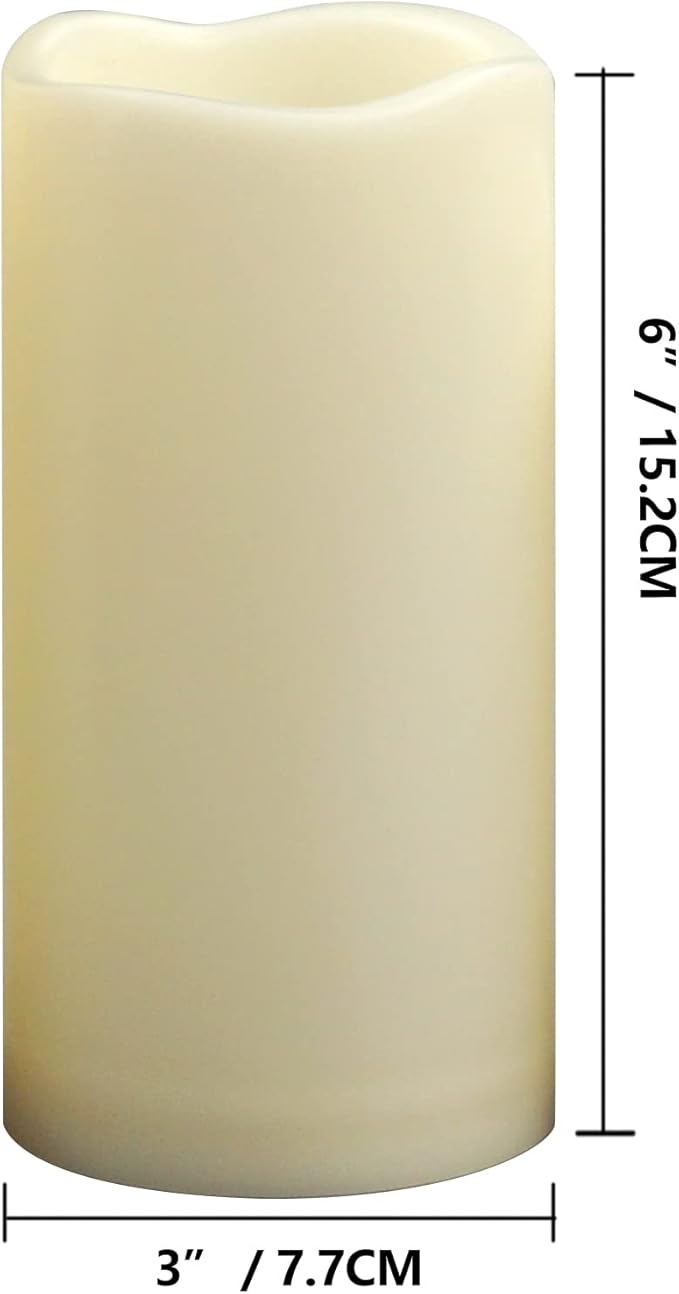 - Set: 4 Pack 3x6 inch Flameless Candles. Appearance Colour: Cream White. Each candle requires 2 AA batteries(Not Included). Attention: Candles have timer function, Don’t have Remote Control.
