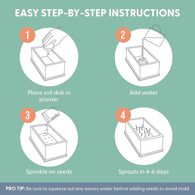 - Cat Plant Magic: Add a soil disk, a splash of water, and a sprinkling of seeds, and watch your cat grass planter kit sprout like magic. Read our Cat Ladies insert for easy-to-follow instructions and growing tips, and watch your organic cat grass sprout up to 4” in just 4–7 days. No green thumb required.