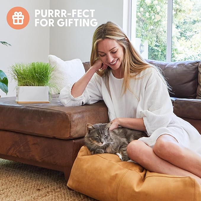 - Part Cat Grass, Part Decor: Our Ceramic planter is a lovely addition to any home. The purrfect cat gift for cat moms everywhere, our simple and elegant cat grass growing kit keeps your house looking greener and cleaner.