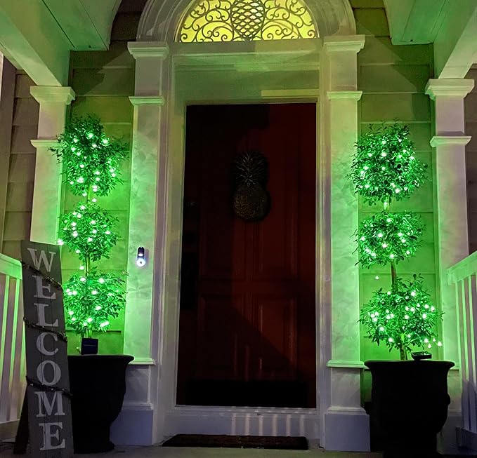 - Outdoor Decor Solar twinkle Mini Lights: 100 LED starry-style fairy lights with green lights accent your space with a unique, inviting glow. 33ft length is perfect to put around a garden or porch railing. In the dark, the wire fades to invisible, leaving only the fairy lights, create a twinkling, mystical ambiance in the evening,