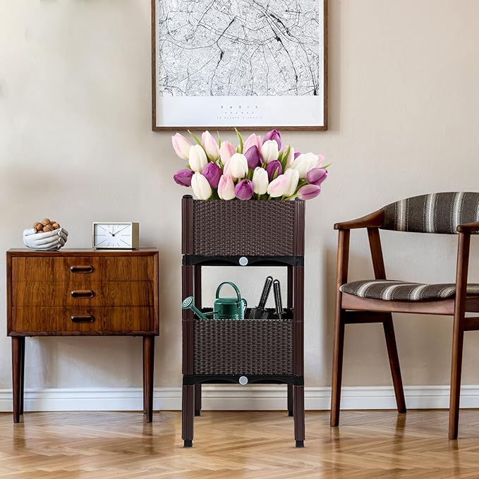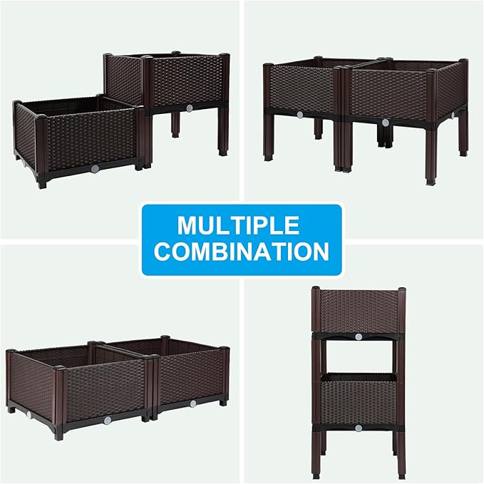 - ✔ SIZE: Each planter raised bed with legs measures 15.7''(W) x 15.7''(D) x 16.5''(H), taller than other plastic or metal garden boxes, providing ample growing space for indoor & outdoor plants, defending against pests.