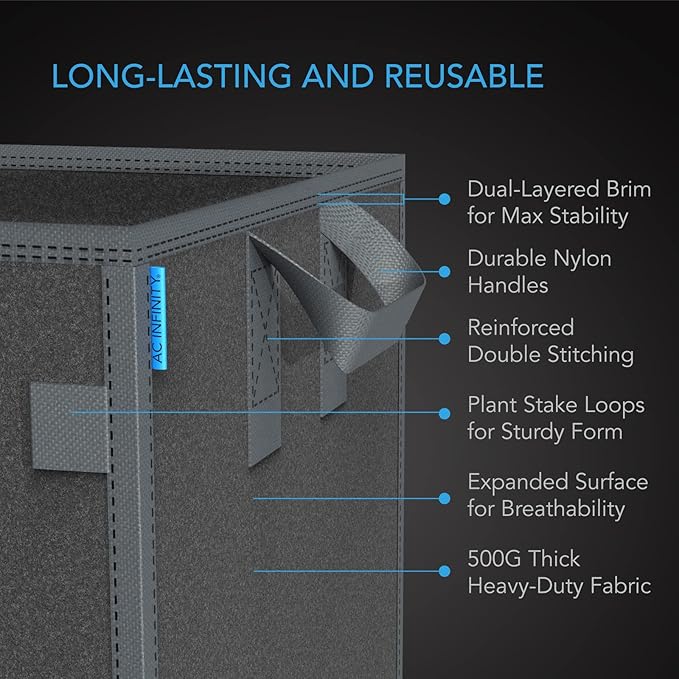 AC Infinity Square Heavy Duty Fabric Pots, 5 Gallon Aeration Reusable Grow Bags 5-Pack with 500G Thick Nonwoven Fabric and Plant Stake Loops, for Garden Growing Fruits, Vegetables, and Flowers