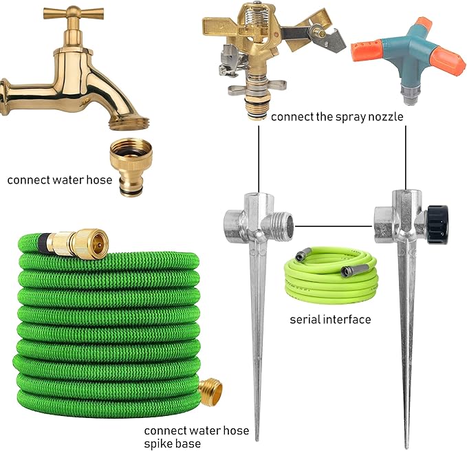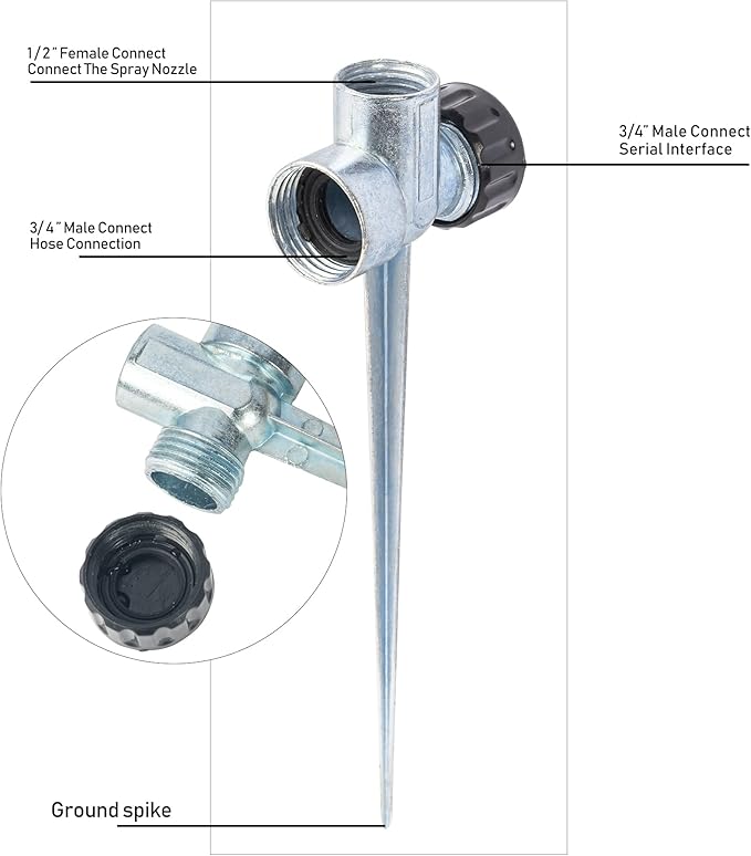 Hourleey 8 Pack 1/2 inch Zinc Alloy Lawn Sprinkler Spike Base, Water Flow Thru Sprinkler for Yard, Lawn, Garden and Grass Irrigation