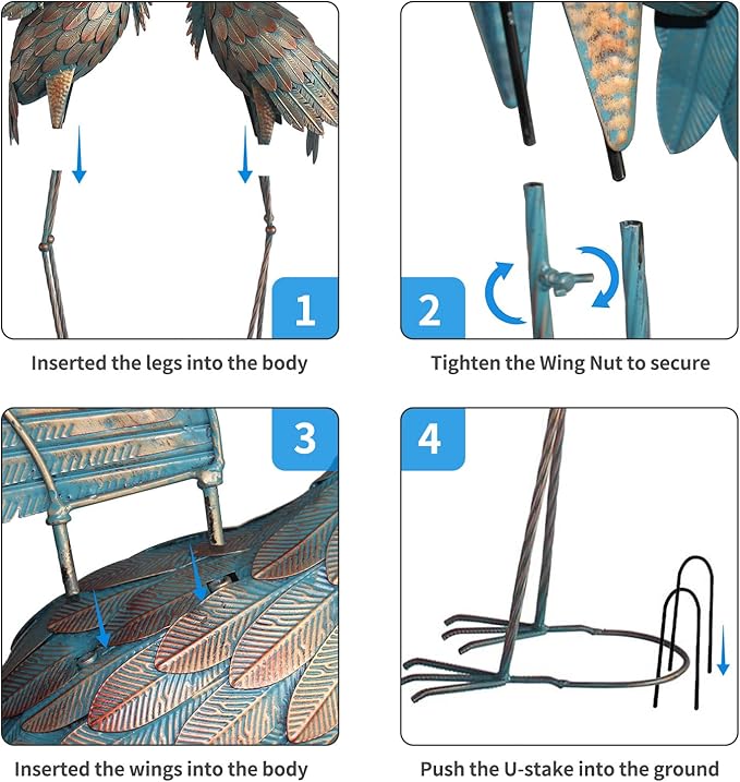 - Easy Assemble: The legs of garden statues knock-down for shipping, no other tools required. Place on level surface and insert included Ground Stakes in desired location for added stability