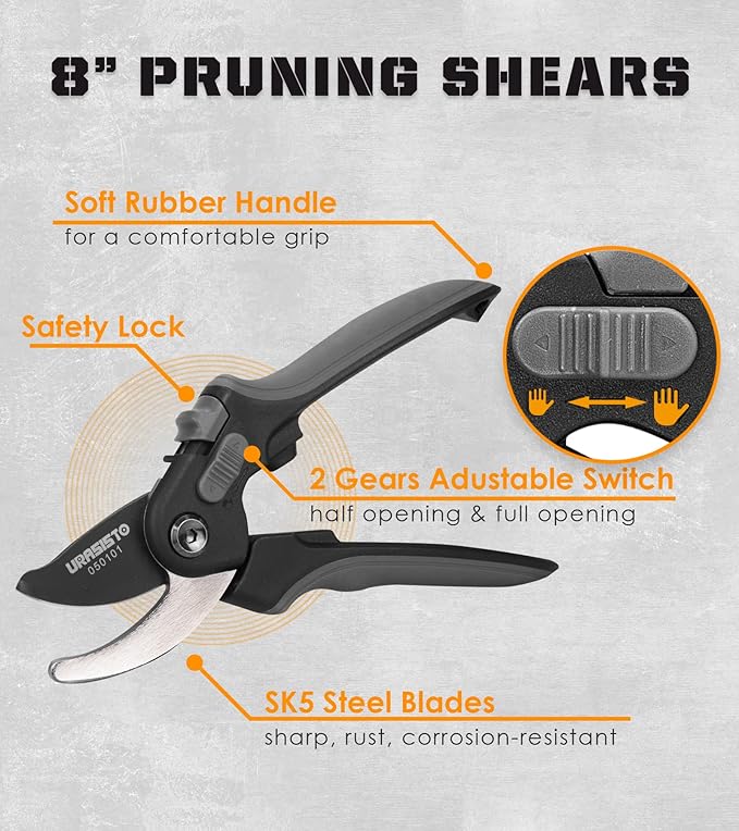 - ◤8” GARDEN PRUNER◢Bypass blade design is ideal for pruning green, living growth like ornamental shrubs and trees. Razor-sharp, precision-ground blade cuts with less resistance than thicker blades and stays sharp for lasting value.