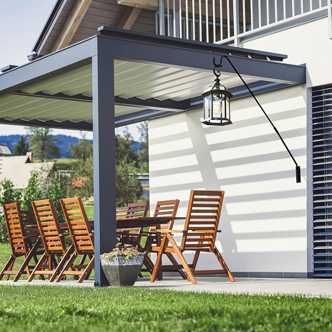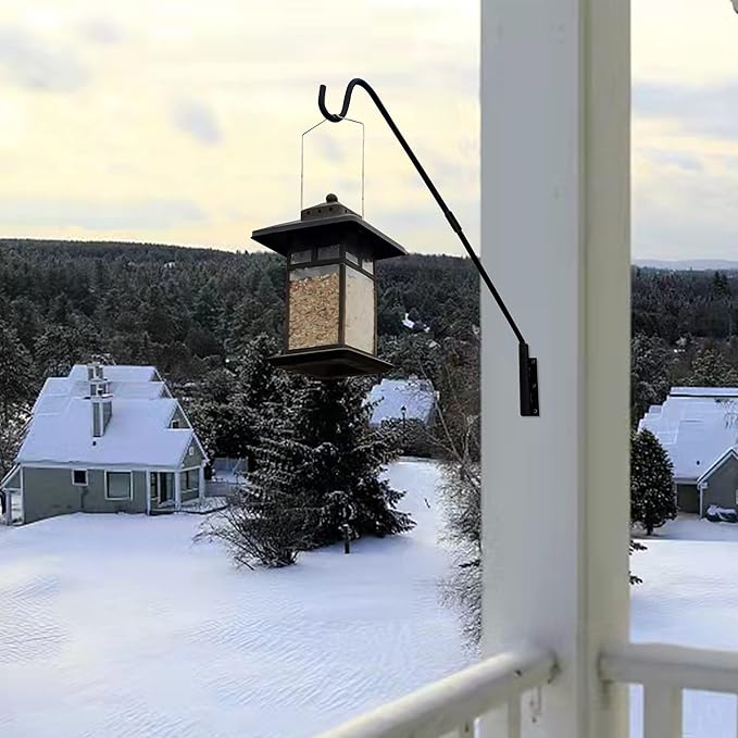 - Premium Quality - Our weather-proof powder-coated metal maintains its subtle black color and quality season after season. Solid bracket and curved shepherd hook helps securely hold items. Suggested max hanging weight: 11 lbs (5 kg).