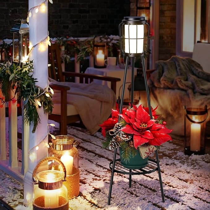 2 Pack Solar Lights Outdoor with Plant Stands - Solar Floor Lamp & Street Lights with Metal Tripod - Patio Decor for Garden, Yard, Pathway, Driveway, Porch