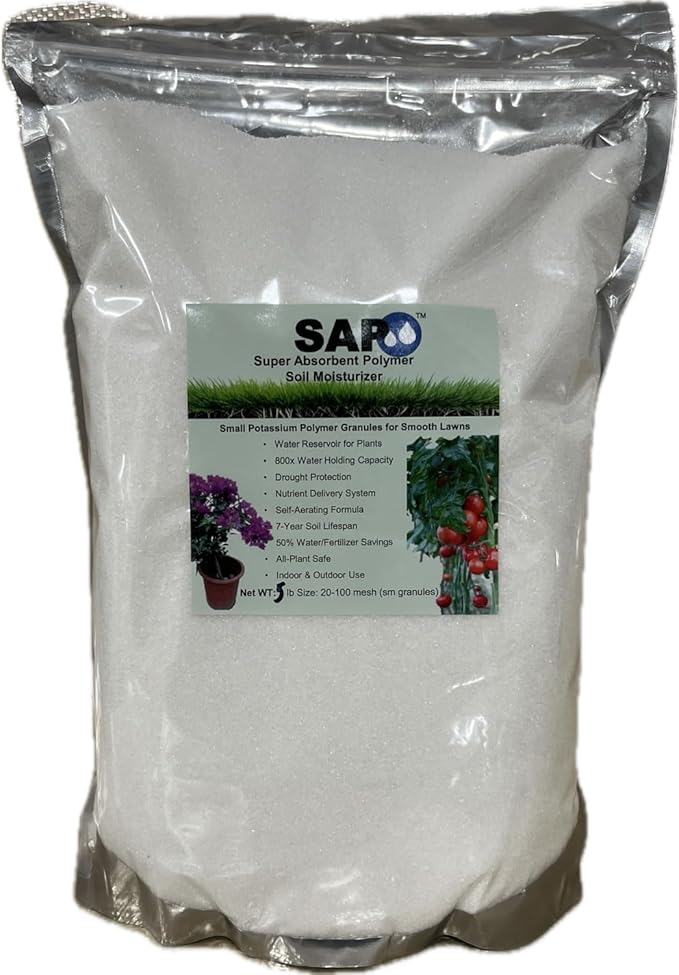 - SAP Superabsorbent Polymer Soil Moisturizer is a water-storing crystal gel that can store up to 600 times its weight in water.