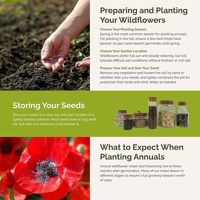 - Attracts Pollinators - With up to 6,000 square feet of ground cover, this non-GMO seed mix is sure to bring the bugs and birds to your yard! Easily attract bees, butterflies, and hummingbirds to pollinate blooms.
