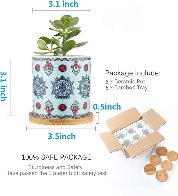 - 【Mandala Style Design】: The flower pot uses the Mandala pattern, 6 different pattern designs are bright and eye-catching. These 6 flower pots can bring you a refreshing feeling whether placed together or individually.