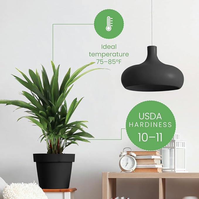 - Easy Maintenance: Lipstick Palm plants grow well in partial shade or filtered sunlight when young and thrive in full sunlight when mature; the ideal temperature is 75–85° F. A heat pack is included with each plant if your region experiences cold weather.