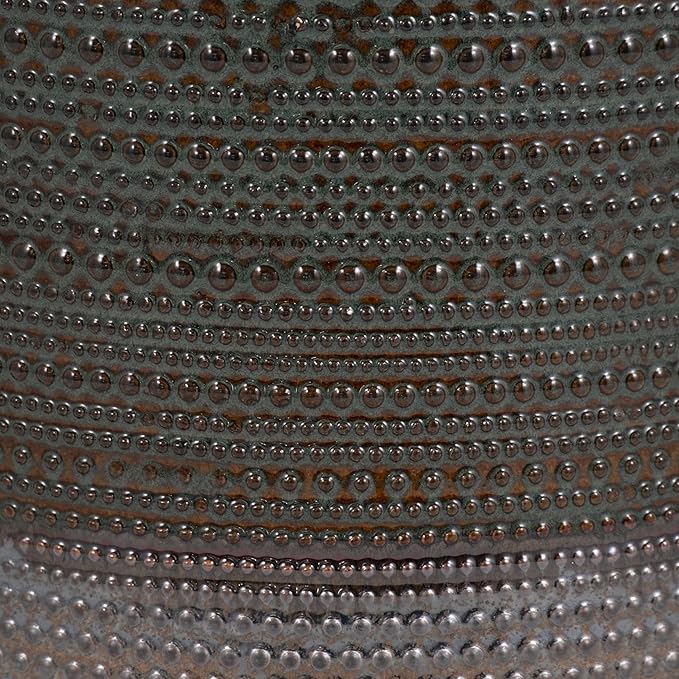 Sagebook Home 8" Ceramic Planter on Bamboo Wood Stand - Green Plant Stand with Contemporary Dotted Design - Indoor or Outdoor Plants and Succulents