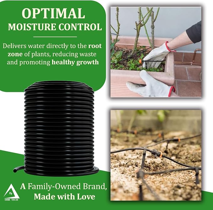 - Universal Emitter Support – DBR Tech drip line irrigation tubing can be used with a range of different outdoor landscaping emitters including vortex, spray, mist, and hydroponics systems to better support your vegetable gardens, fruits, and plants. Easy Cut-to-Length Installation, one of the most important aspects of our blank distribution tube is that it can be cut to fit your specific outdoor space, so you can run multiple lines or single lines without wasted tube excess lying around.