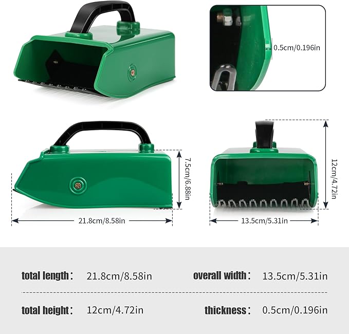 - This durable berry picker has dimensions of 9.05x5.3x4.7 inchs and weighs 0.72lb.