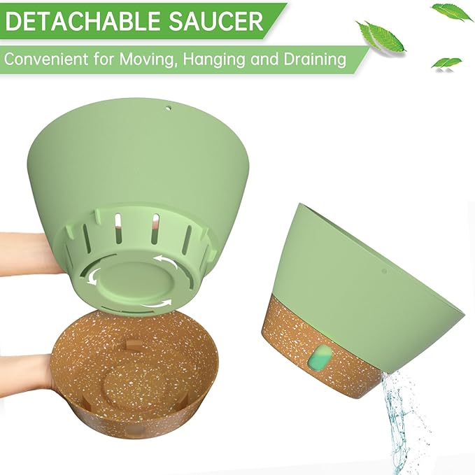 - Snap-in Tray with Visible Water Level: The tray can be removed for easy cleaning of the flower pot. The self-watering flower pot with drainage holes can drain excess water to the tray, so the tray will store an amount of water for the plant(Longer than 7 days). And you can water the plants by looking at the water level.