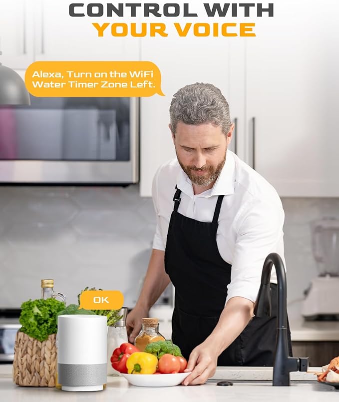 - 2 SEPARATE WATERING SYSTEMS: WiFi water timer with 2 independent water valves, each valve can be individually programmed with up to 3 different watering schedules. Allows you to customize the appropriate watering plan for different areas such as lawns and flower beds.