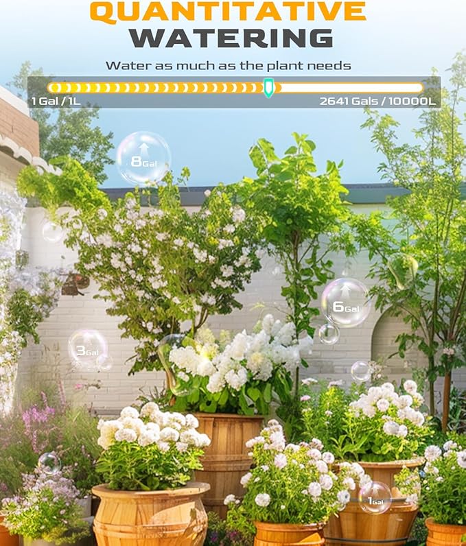 - TRACK THE FLOW, SAVE WATER: Each zone of the WiFi faucet timer has a built-in water flow meter which measures in gallon or liter and records water usage for nearly 10 days in a table, helping you keep track water consumption, adjust the watering plan and save your water bills.