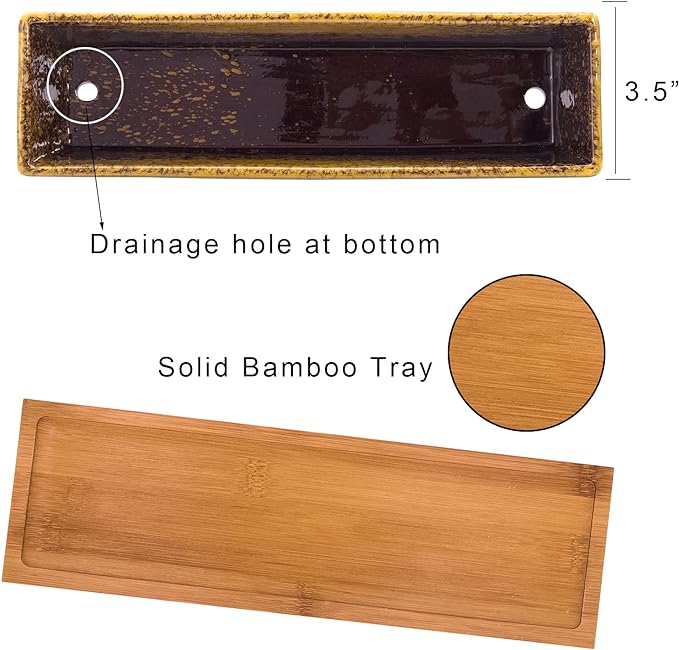 - 【Dimension】The package includes a rectangle succulent planter pot with bamboo tray in perfect size: 12 inch(L)*3.5 inch (W)* 2.7 inch (H). For any quality problems, please feel free to let us know. Artketty will never disappoint any customer.(PLANTS NOT INCLUDED)