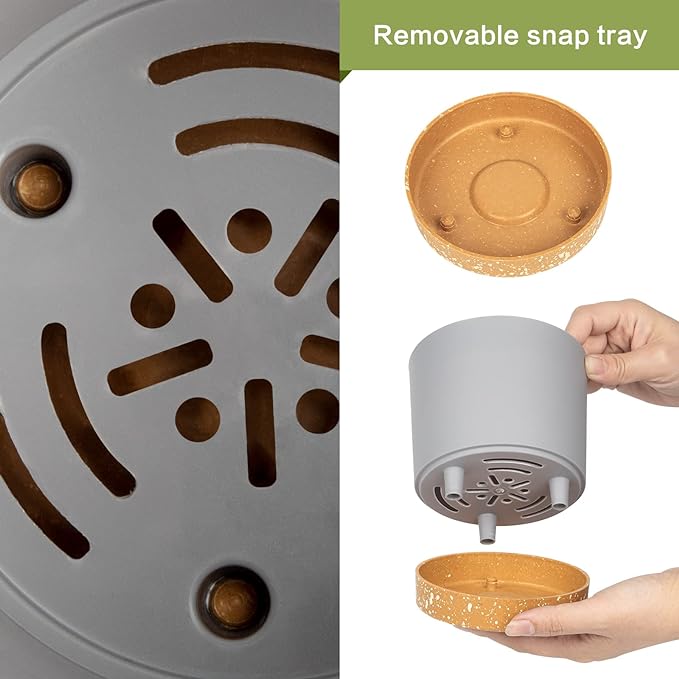 - Easy draim holses Movable tray:Excess water flows out the dual drainage holes to prevent overwatering and flooding. Plates capture overflow water for easy cleanup. It is recommended to shop a layer of filler in the bottom of the flower pot.