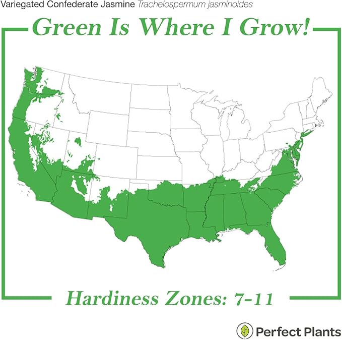Perfect Plants Variegated Confederate Jasmine Vine Live Evergreen Outdoor Planting Creeping & Climbing Habit for Fences, Trellis, or Arbor, 3 Gallon Pot, Fragrant White Flowers