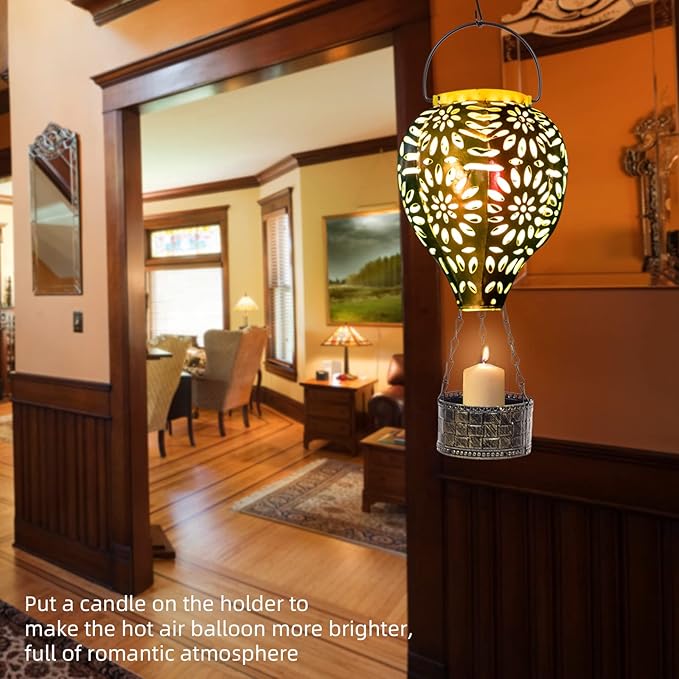 - Wide Application:This solar lantern lights come with a metal "S" hook, can be hung anywhere easily, such as balcony, porch, pergola, tree or a shepherd hook. In addition, hot air balloon has rich meanings, which represents courages, hopes, dreams, romantic love, so it's a great gift for your family and friends