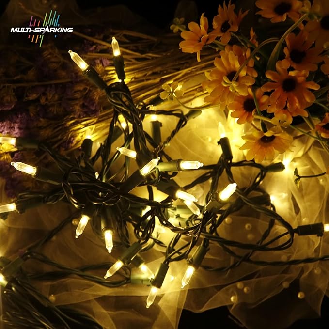 MULTI-SPARKING White Christmas LED Lights - 100 Count Warm White Holiday String Lights for Tree, Party, Wedding, Indoor and Outdoor Use, 33 Feet Green Wire, UL Certified, Connectable