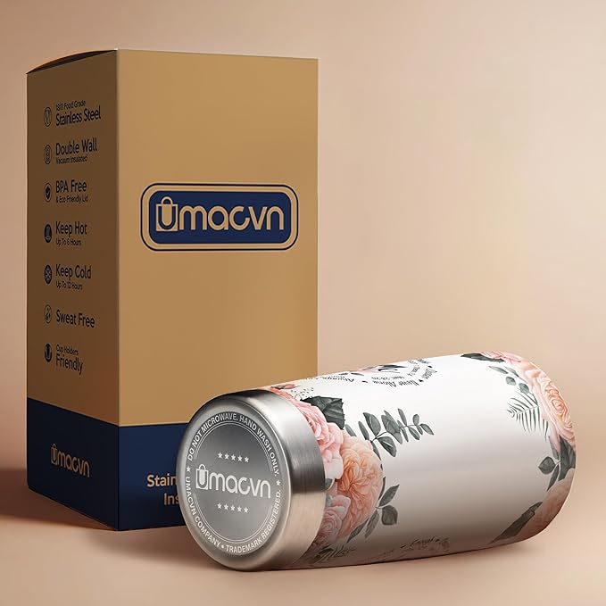 - DOUBLE WALL VACUUM INSULATION: Made with double-wall vacuum insulation, this Gift for Women Tumbler can keep your favorite beverages hot for 8+ hours and cold for 12+ hours in normal temperature environment. This can hold hot coffee, iced cold fruit teas, wine tumbler,... without affecting your drink’s natural taste.