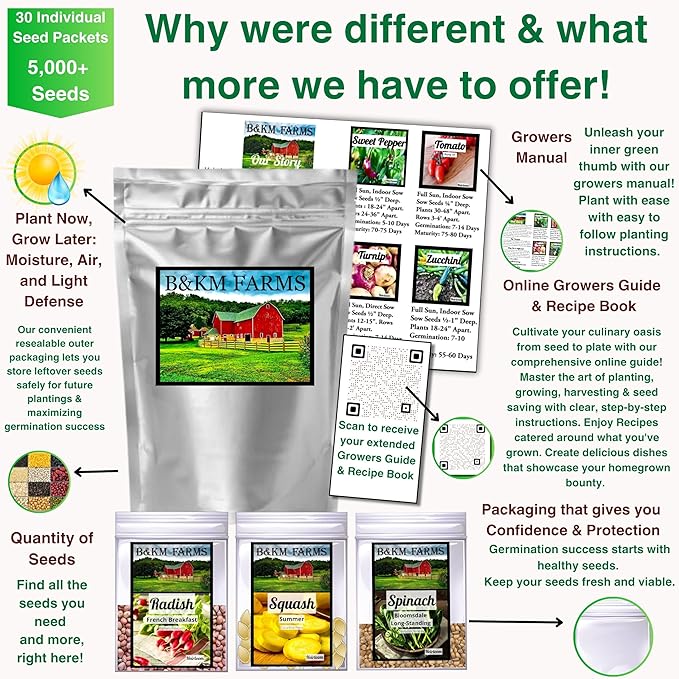 - Heirloom and Non-GMO: Features a selection of heirloom, non-genetically modified seeds for organic gardening.