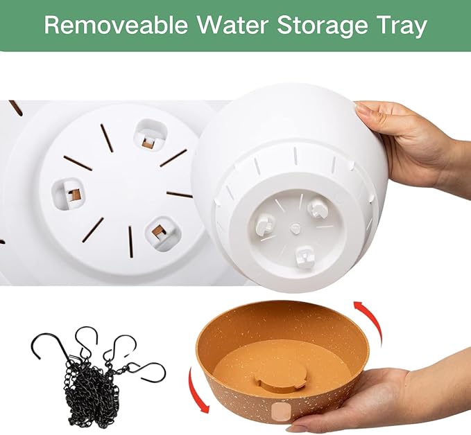 - SELF WATERING & VISIBLE WATER LEVEL: Self watering hanging pot is ingeniously designed, tightly connecting the tray and the pot body, turning the tray into a water reservoir with visible holes, allowing you to clearly see the water level (If you water too much, water will flow out from the edge of the tray to prevent the plants from being submerged)