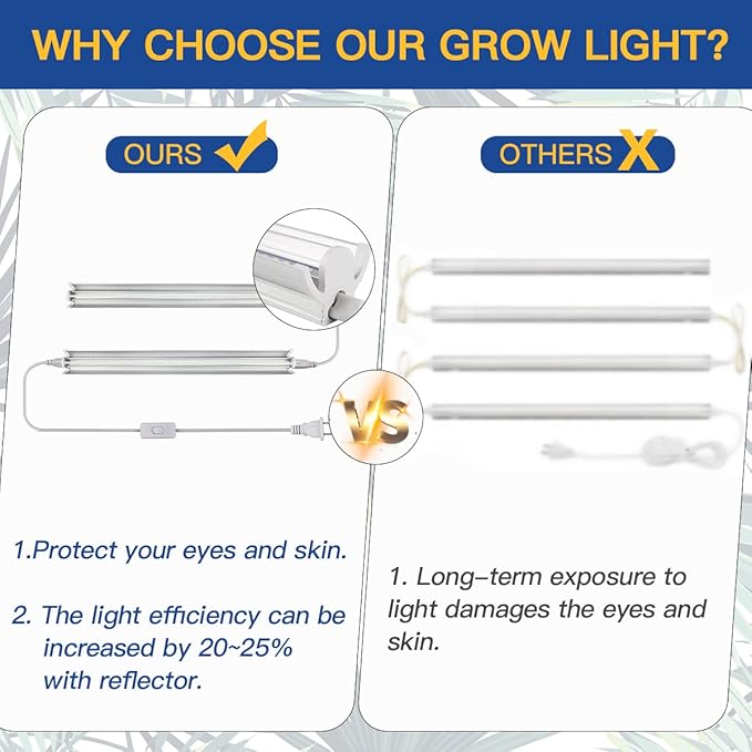 - 🪴V-shaped Reflector Design - Compared with other indoor plant light strips without reflector, GYTF's hanging grow light has better heat dissipation, and the light efficiency can be increased by 20~25%, It is a great option for your cabinet and shelf plants.