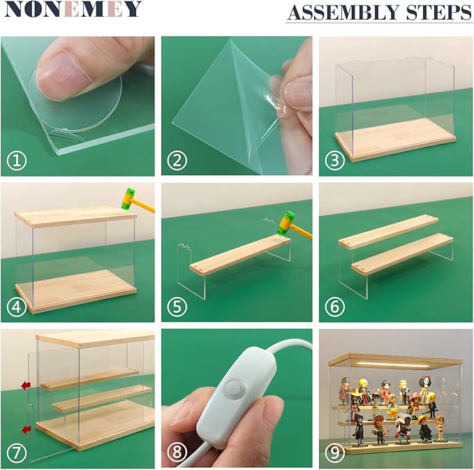 - 【Easy to Assemble】Display case for figures is easy to assemble, you just connect the sides, top and head. The edges are smooth and the acrylic case fitting perfectly against the base. it can be moved at will, not easily knocked over.