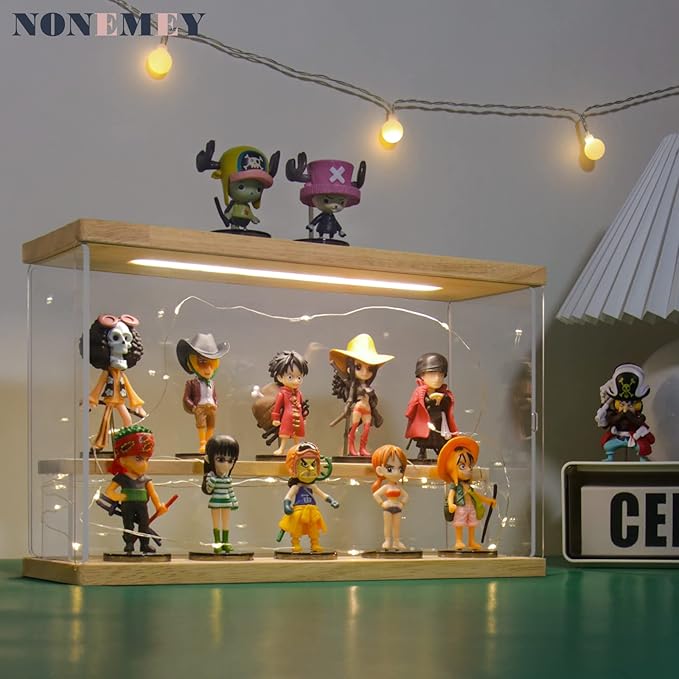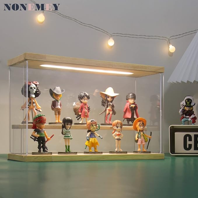 - 【2 Tier Clear Showcase with Led light】The display shelves has sliding doors, which are easy to open to keep the collection dust-free, reduce sunlight and ultraviolet radiation, and delay plastic aging. Led lights makes your treasured collectibles go from plain on the shelf to being highlighted beautifully.
