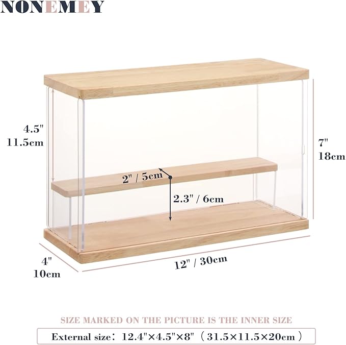 - 【Premium Material】Made of high-quality acrylic, each layer of our display stand has a wooden partition, which has better load-bearing volume than ordinary display stand case. The size of the two tier display case is 12*4*7inch.