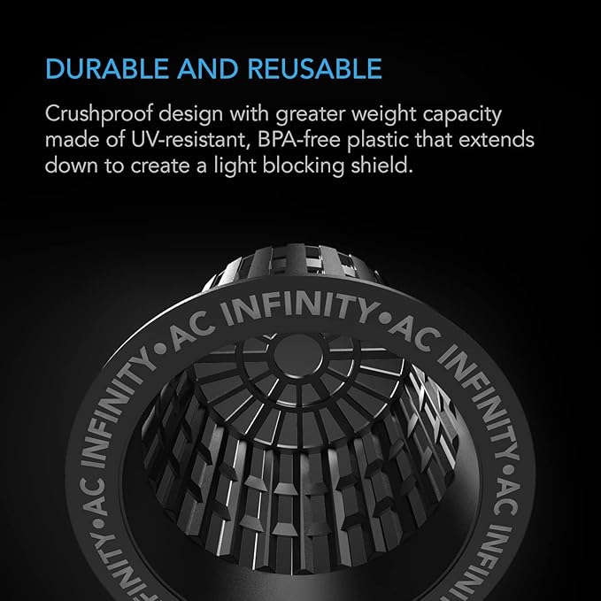 - Wide lips fit in circular surfaces like mason jars and trays in nutrient film technique applications.