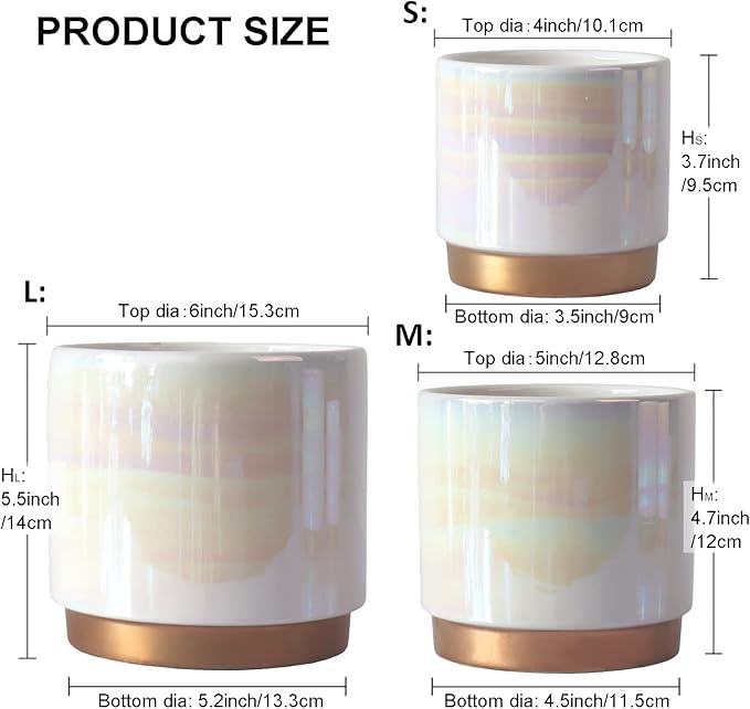 - Rainbow Pearlescent Glazed Design With Drain Holes: The rich color of this ceramic flower pot is covered a rainbowl look. Deep planting space promotes root growth to keep plants healthy. Large drain holes are good for draining, it is suitable for orchids, succulents, cacti, other flowers and green plants, perfect for home decoration.