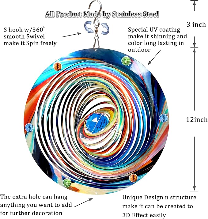 - 【<b>Vivid reflective color<b>】wind spinners are individually hand painted by epoxy protective coating with colorful sparkle powder inside to highly resist weather and rust. -Meanwhile,the reflective colorful glitter material gives off a sparkling, captivating and magical 3D visual effect, its beautiful light reflecting and attractive view whatever in night or day, wherever room or garden.