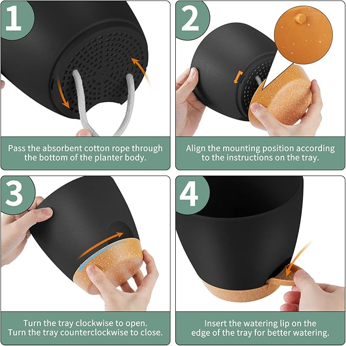 GARDIFE Plant Pots 7/6.5/6/5.5/5 Inch Self Watering Planters with Drainage Hole, Plastic Flower Pots, Nursery Planting Pot for All House Plants, Succulents,Snake Plant, African Violet, Flowers,Black