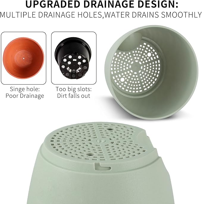 GARDIFE Plant Pots 7/6.5/6/5.5/5 Inch Self Watering Planters with Drainage Hole, Plastic Flower Pots, Planters for Indoor Plants, Succulents,Snake Plant, African Violet, Flowers,Green