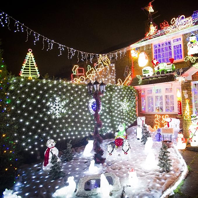 - Extendable White Net Lights: Our white net lights are designed for versatility and impact, allowing you to easily connect up to 3 sets for a larger, more stunning Christmas light display. With a generous coverage area of 12x5 ft and a total of 1080 LEDs when fully connected, these net lights outdoor are perfect for adorning bushes, trees, fences, walls, windows, and more. Notice: Please handle our net lights gently during use to avoid damage