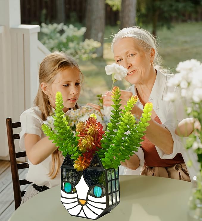 - PLANT GIFTS:The stained glass cat planter can be a gift for friends who like planting and gardening;gifts for mom;father's day gift;holiday gifts;Christmas decorations;will be the perfect container decoration choice