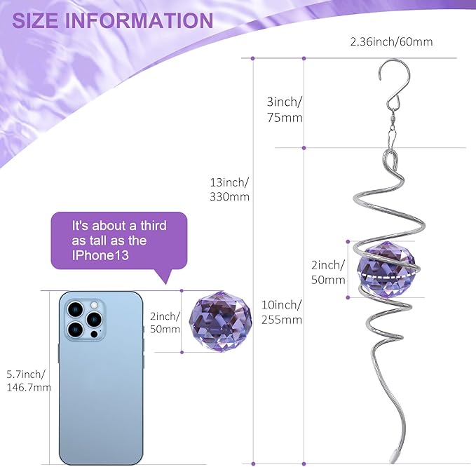 - ✨【 Unique Meaningful Gifts 】Purple Crystal symbolizes mental and spiritual. The Gazing Ball Spiral Tail Wind Spinner came in a beautiful gift box that was easily giftable. This magic ball spiral tail is a wonderful gift that will be a hit as a birthday gift, Thanksgiving gift, Christmas gift, housewarming gift, garden gift, Decor gift, etc.. The wind spiral with crystal ball is a perfect gift for birthdays, Thanksgiving Day, Christmas, etc. and any you loved people ( family, friend, etc.).