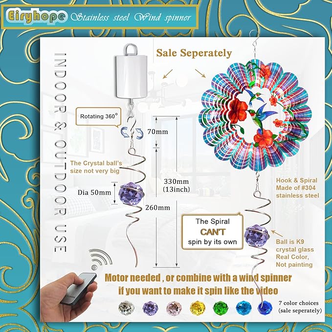 - 【 3D Wind Spinners Stabilizer 】The wind spinner spiral with a 360° swivel hook is easy to hang. Our wind spinner crystal tails are gorgeous additions to our range of 3D wind spinner accessories. Attached to the bottom of kinetic wind spinner, which adds another dimension to the overall look, also helps provide stability on windy days. Since the Wind Spinner Stabilizer Spiral Tail can't spin on its own, add a wind spinner motor (not included) to help it spin.
