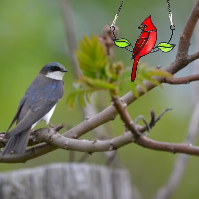 Cardinal Suncatcher, Small Stained Glass Birds Window Hanging Decoration