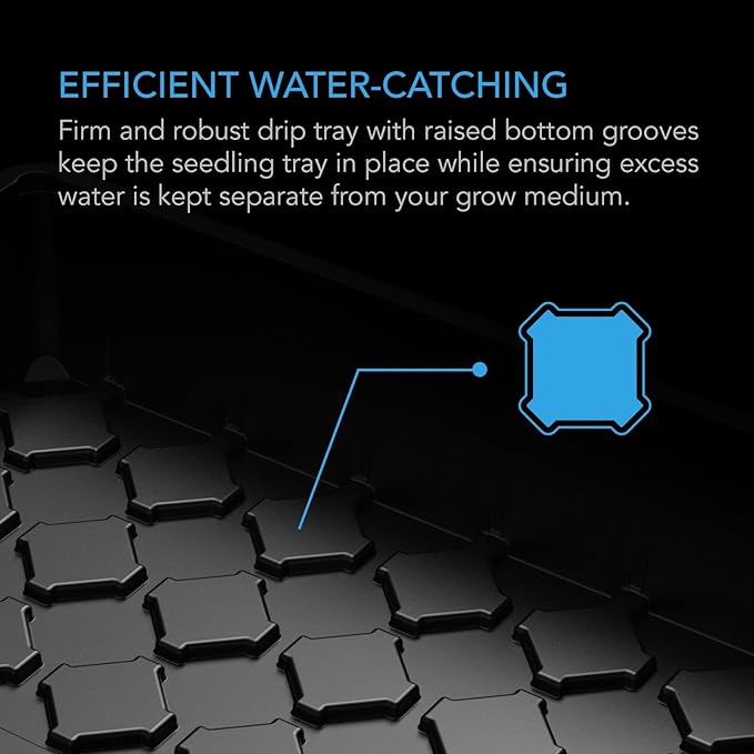 - Lightweight 5x8 seedling tray can support up to 40 seedlings and is built to drain excess water.
