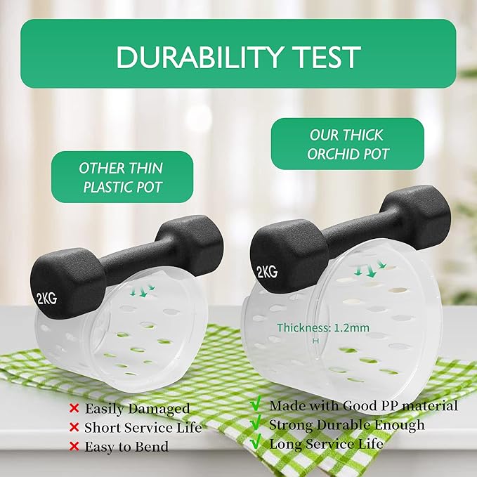 - [STURDY ORCHID POTS] The reinforced design of the top edge of the orchid pot can make the orchid pot more drop-proof and sturdy, and increase its service life of the orchid pot. Plastic orchid pots are lighter and less fragile than ceramic pots, easy to move everywhere