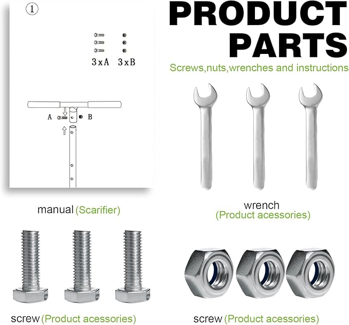 - 【Easy To Assemble And Use】Package included necessary screws, nuts, wrench and instruction manuals, just install the 4 parts together then you could start your work. Hold the T-handle and let the tine touch the soil; press down the claws into the soil and simultaneously turn them in clockwise direction; pull up the claws. Shake off soil, grasses, pebbles. Repeat the process, you could finish easily.