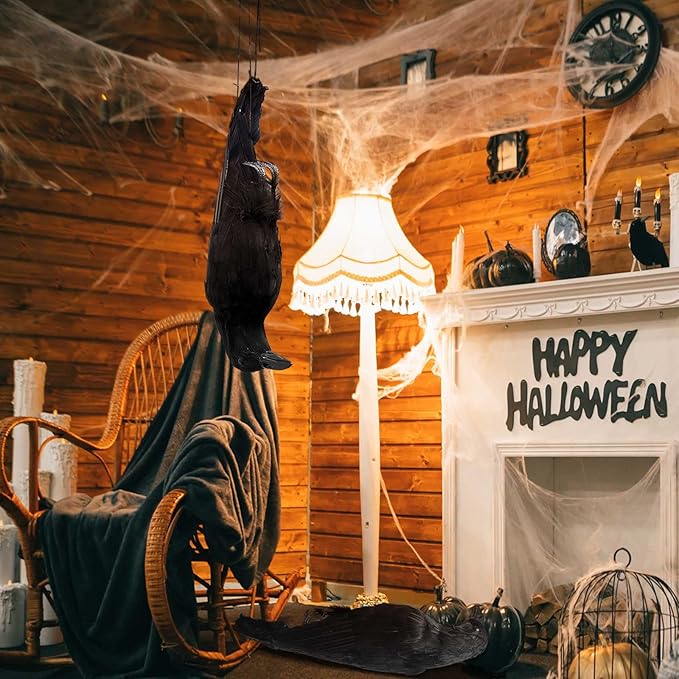 - Package Contents: our fake dead crow set includes 2 pieces of fake black crows, which look like the real thing and set off a scary atmosphere; If you are looking for the right Halloween decoration, it will be worth your choice; They help you create a creepy atmosphere for your home this Halloween season