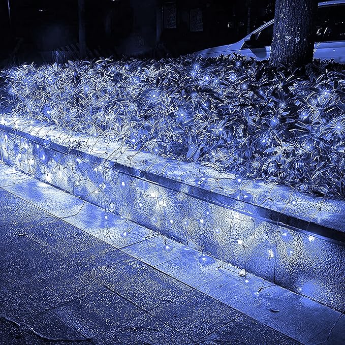- Christmas Net Lights: Christmas 360 LED net lights, the size is 12 FT X 5 FT, the lead length is 16.5 FT, and the horizontal distance between each lamp bead is 4.7 inch. Place or hang the exquisite net lights on the trees, grass, bushes or any place you want, very easy to decorate.